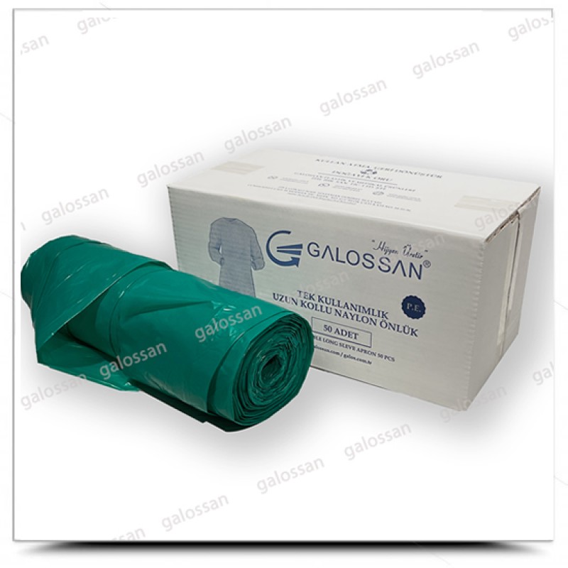 Tek kullanımlık Uzun Kollu Naylon Önlük Yeşil 50'li